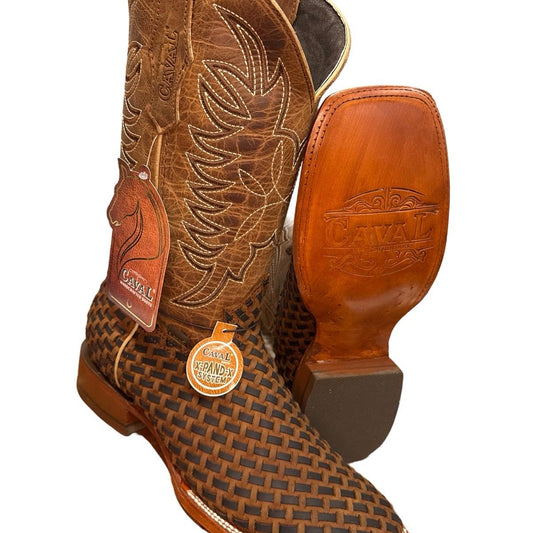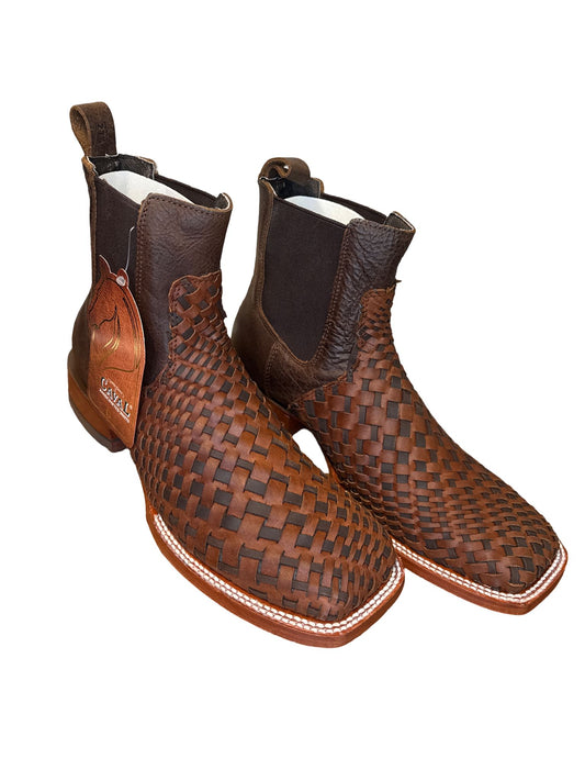 Bota Vaquera Tejida Caval Petatillo Artesanal - Handmade Leather Boot for men Footwear