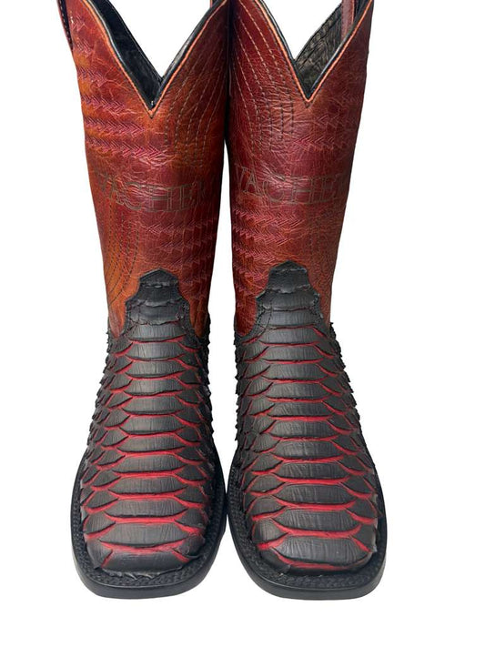 Bota Vaquera Print Piton Rojo Black Cherry Para Caballero
