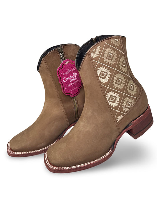 Botin Cafe Printeado Azteca Con Cierre Para Dama