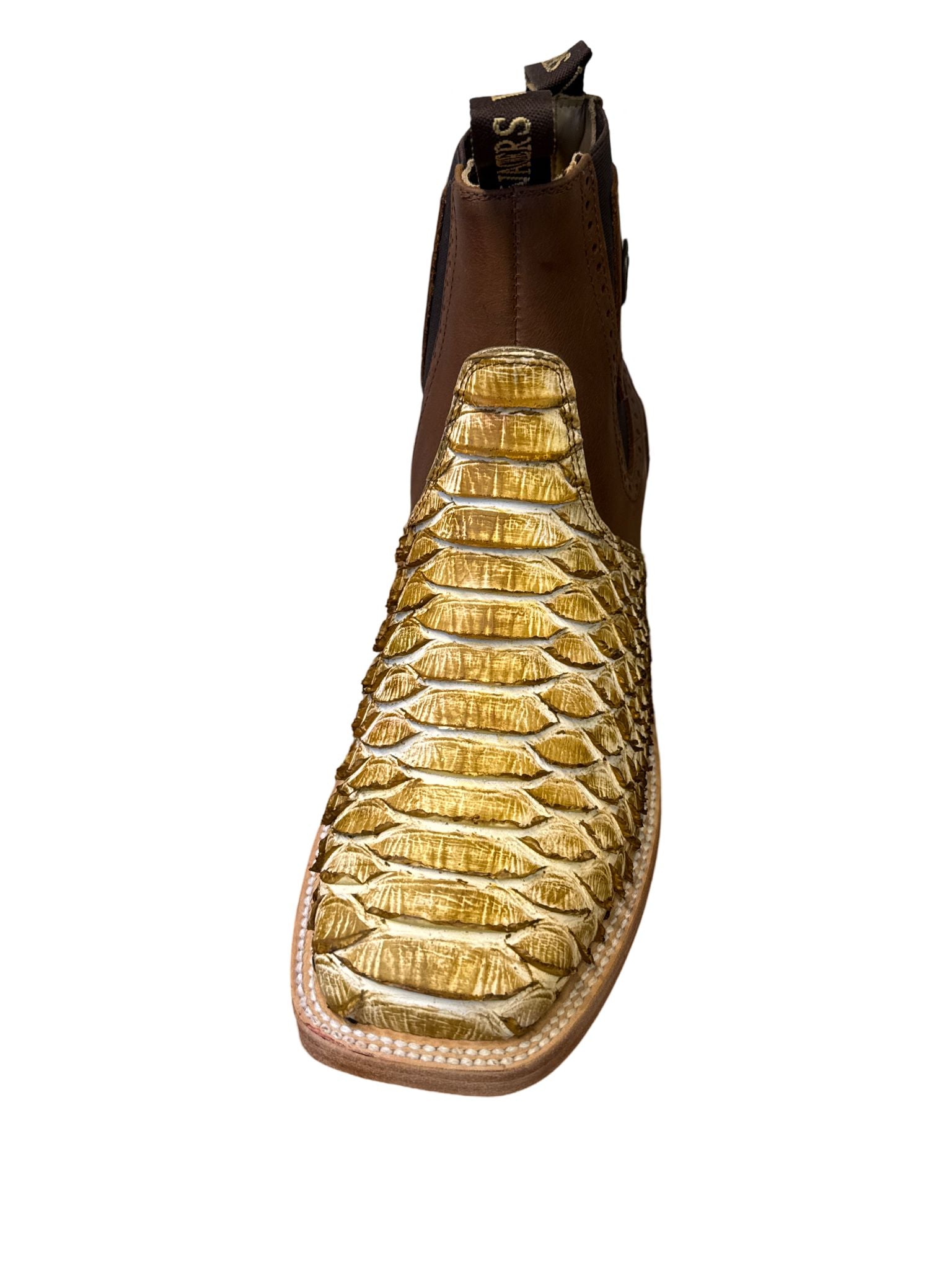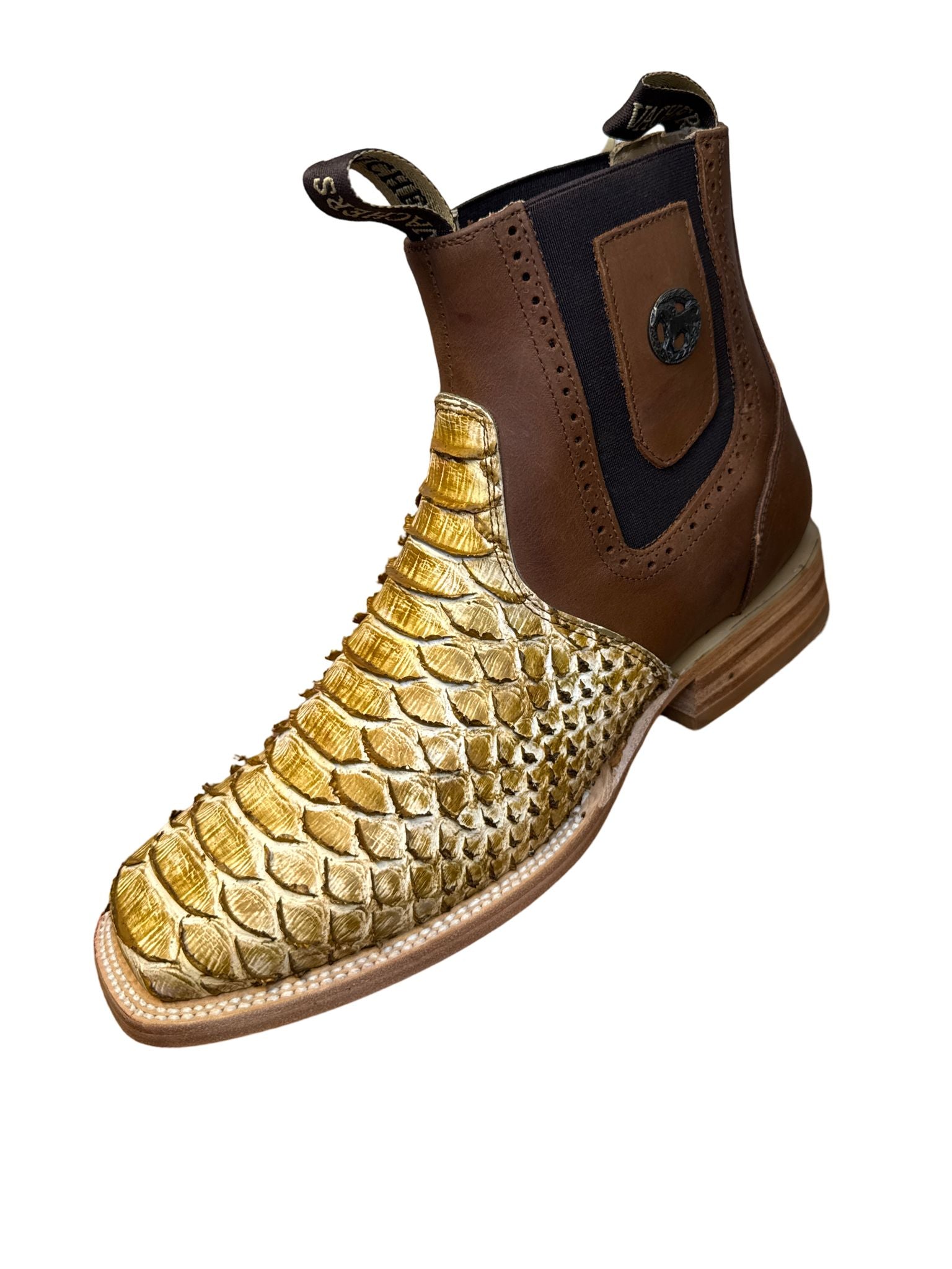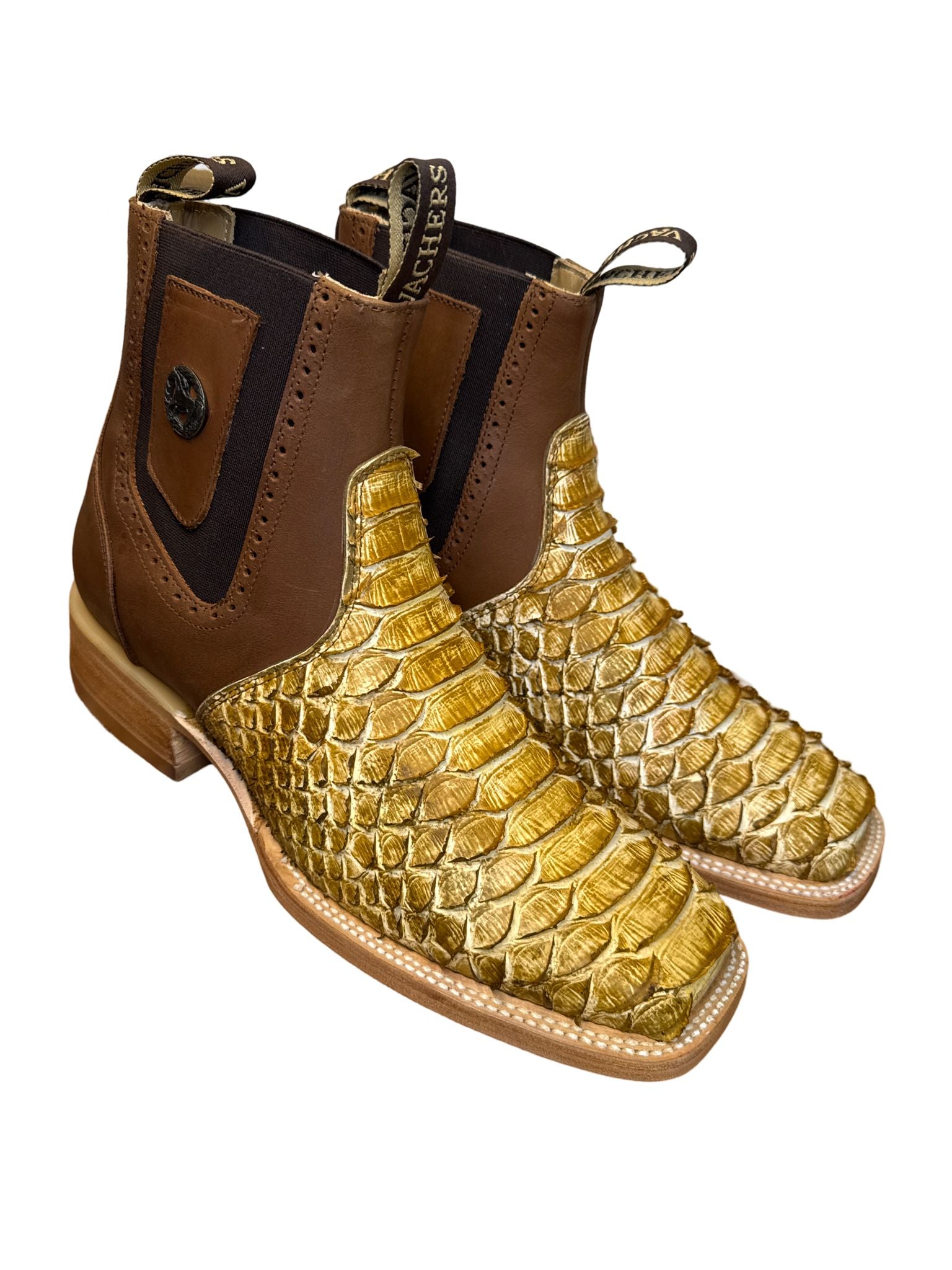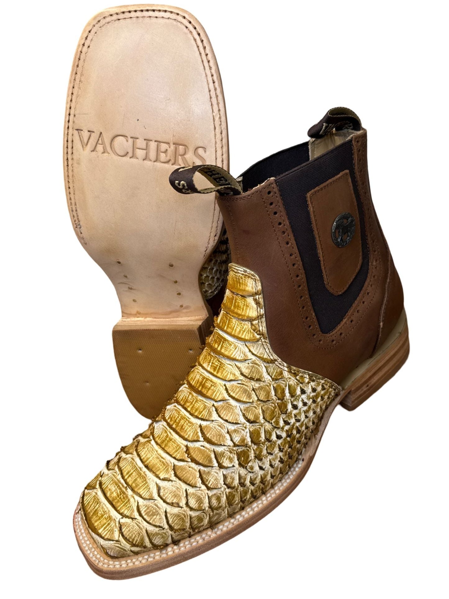 Made in Mexico, Vachers 24k Piton Escama Jumbo Print are 100% handmade, high-quality leather boots for men. The unique piton escama jumbo design adds a touch of luxury, while the leather sole provides comfort and durability. Step up your style game with these comfortable and stylish boots.